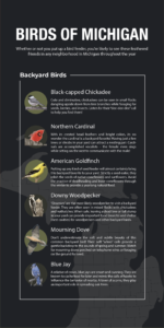 Whether or not you put up a bird feeder, you’re likely to see these feathered friends in any neighborhood in Michigan throughout the year.
